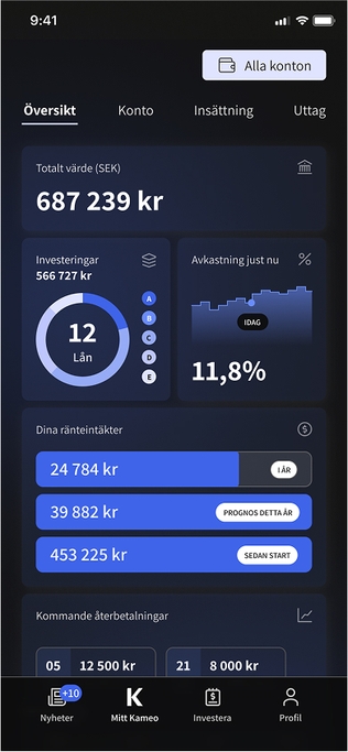 – The aim is for the app to grow into the backbone of the Kameo platform, since mobile is already the natural tool for many when it comes to investments, says Urban Stärner, Chief Product Officer.