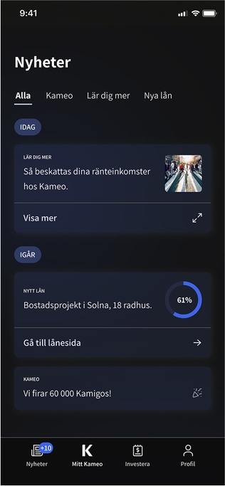 – We’ve already seen positive results from the app. Many investors who had been inactive for a long period have started investing again, which we believe is largely due to the app increasing engagement and making it easier to get started, says Linda Borgudd, Head of Marketing at Kameo.