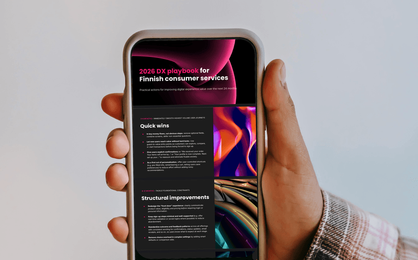 Our Spring 2026 report examines how to get more value from the digital investments you've already made – combining global research and our own research of Finnish digital consumer experiences. Did you know that 67% of Finnish services hide key user value behind login, for example? Explore more and download the report below!